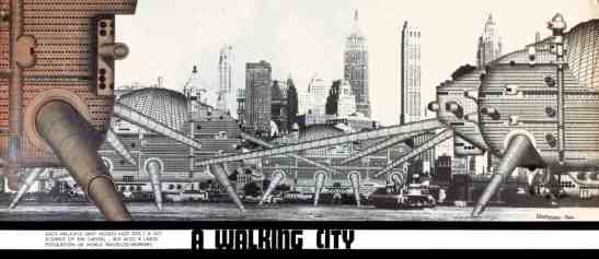 The Walking City. Why make people move when you can relocate intelligent buildings and robots instead? Ron Herren’s Walking City is an array of giant, self-contained living pods that move where needed.