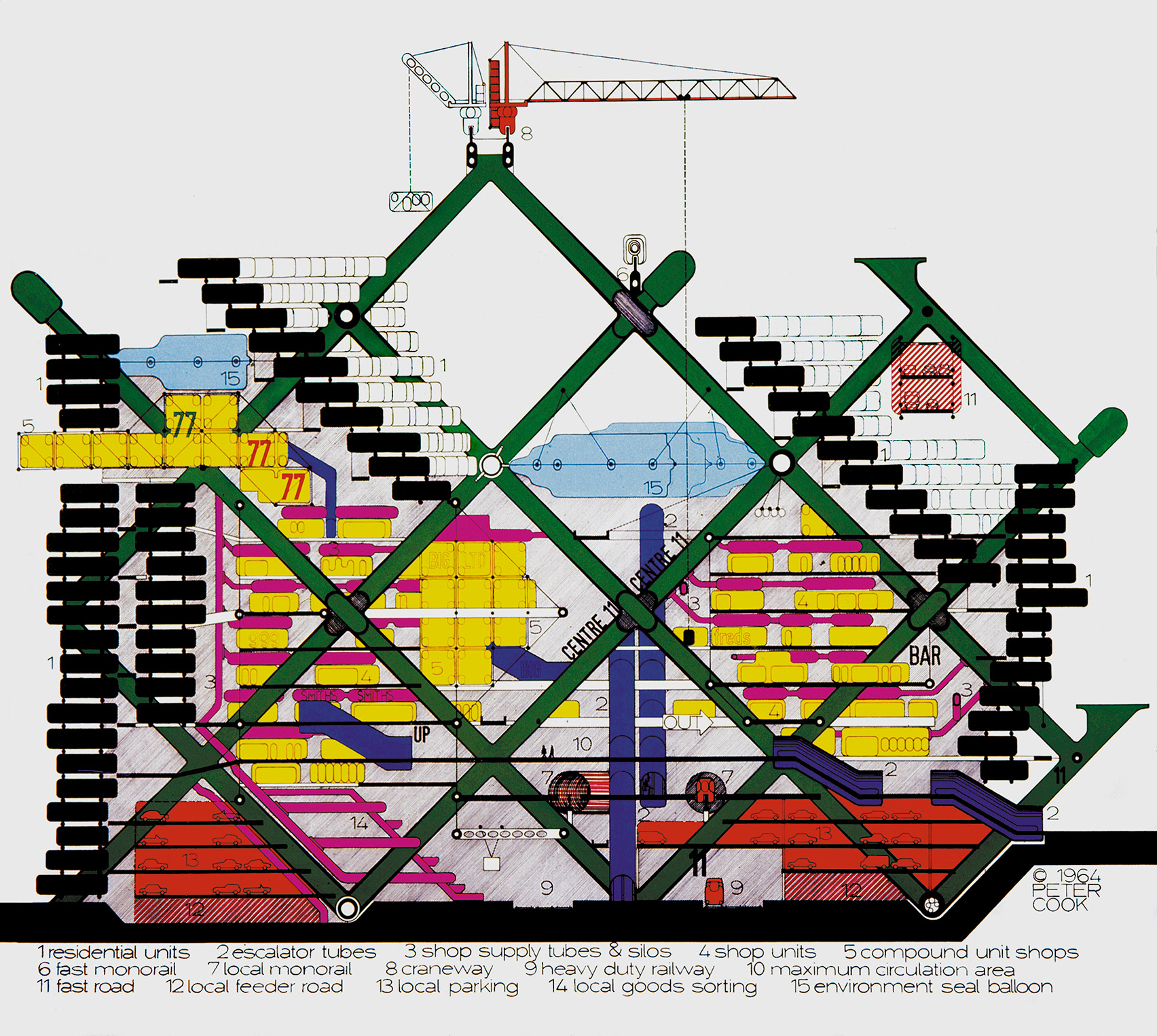 Archigram’s “response to the unresponsive city was to question (though not reject) the urban environment.”