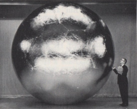 Three Years Ahead of Time. This 15-foot inflatable balloon “may play an important role in man’s exploration of the moon. The silvery ball was devised to be placed on the moon’s surface, where it would reflect the sun’s rays and serve as a lunar landmark for astronauts.”