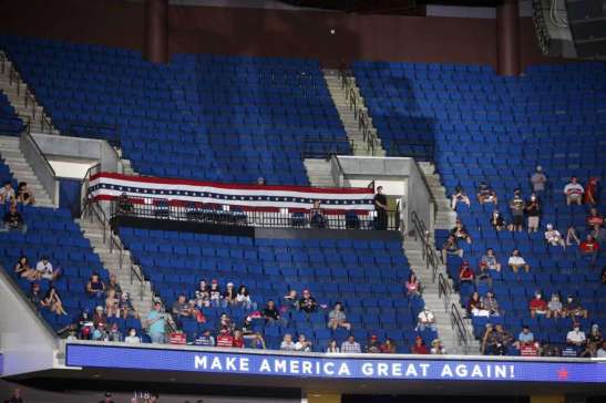 Trump’s Tulsa rally venue was less than one-third full. Image from France 24.
