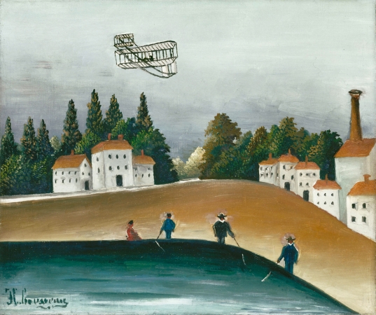 Pêcheurs à la Ligne avec Aéroplane, 1909, Henri Rousseau. Oil on canvas, 18 1/8 x 21 5/8 in. Image from Musée de l’Orangerie. My favorite Rousseau.