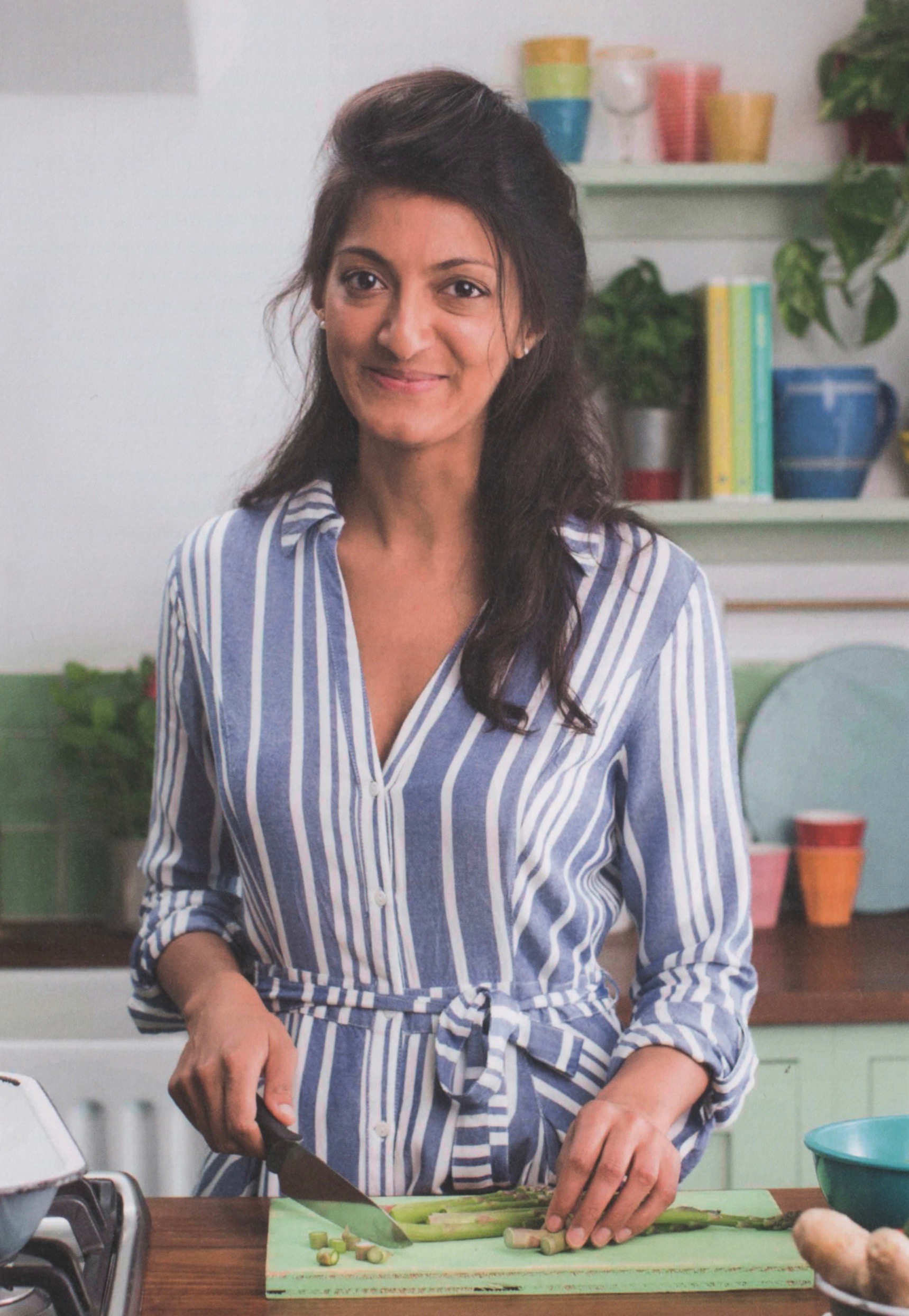 Iyer’s bio notes, “When not working with food, she can usually be found walking her beautiful border collie Pepper by the riverside in East London, entertaining at home, or filling her balcony and flat with more plants than they can hold. Rukmini runs an occasional series of supper-clubs for charities including Oxfam and Women’s Aid.”
