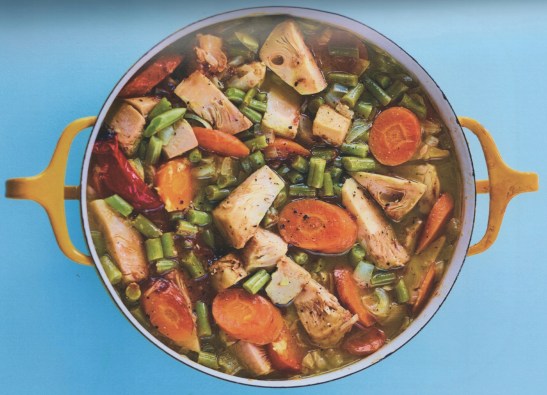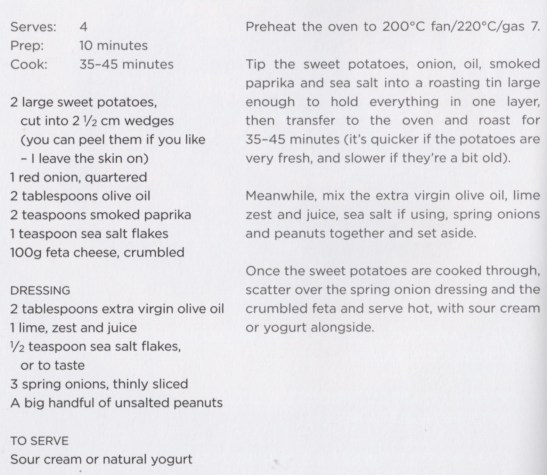 Here are tidbits, along with three recipes, gleaned from Iyer’s The Roasting Tin Around the World: Global One Dish Dinners. I’ve already tried this first one, and it’s a “make-again.” Iyer says, “Add some freshly chopped red chili if you like for extra heat.” I jazz up my helpings with Tabasco Sauce.