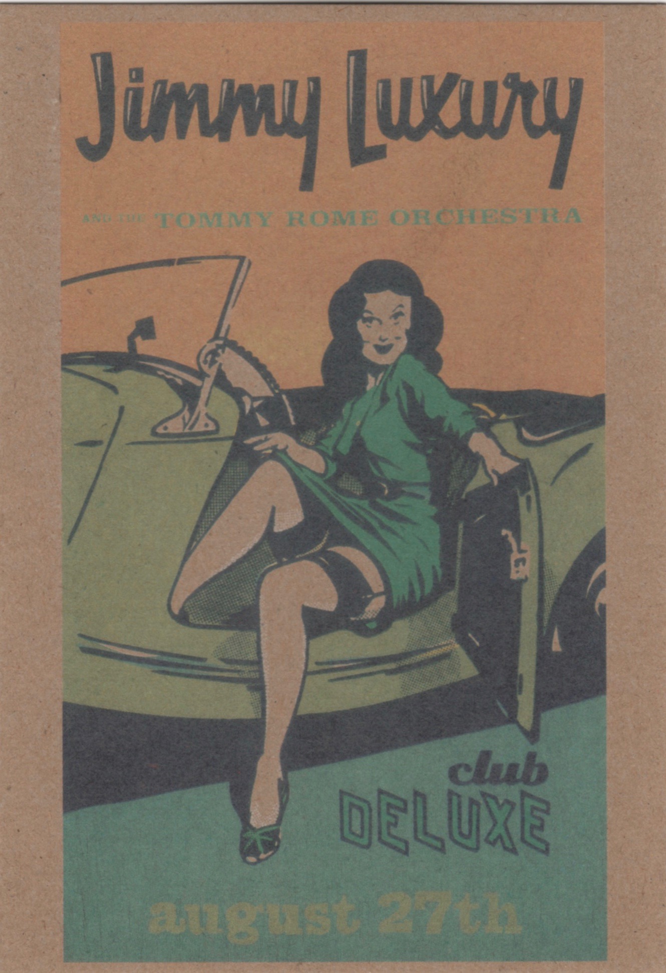 Club Deluxe’s current list of performers doesn’t mention Jimmy Luxury, nor the Tommy Home Orchestra. I cannot identify the young legs… er lady, but I believe she’s in an MG TD or TF.