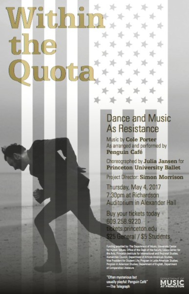 The new production of Within the Quota was choreographed by Julia Jansen, Princeton Class of 2019. The London-based Penguin Café performed an arrangement of Porter’s music prepared by Simon Morrison, Princeton Professor of Music. Arthur Jeffes’ Penguin Café evolved from his father Simon’s Penguin Café Orchestra.
