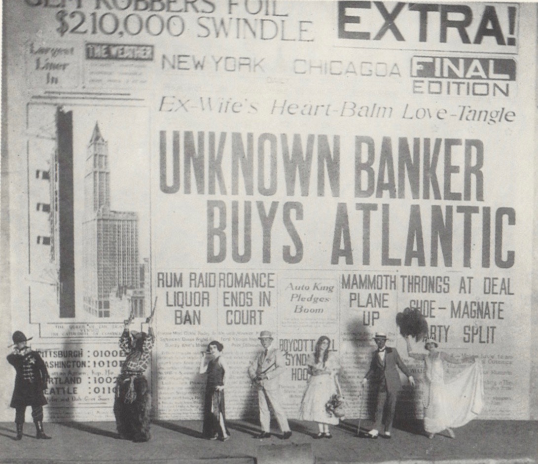 An evolving giant tabloid shares headlines such as “Unknown Banker Buys Atlantic” and “Ex-Wife’s Heart-Balm Love Triangle.” Murphy’s biting satire, of course, is amenable to revival updates.
