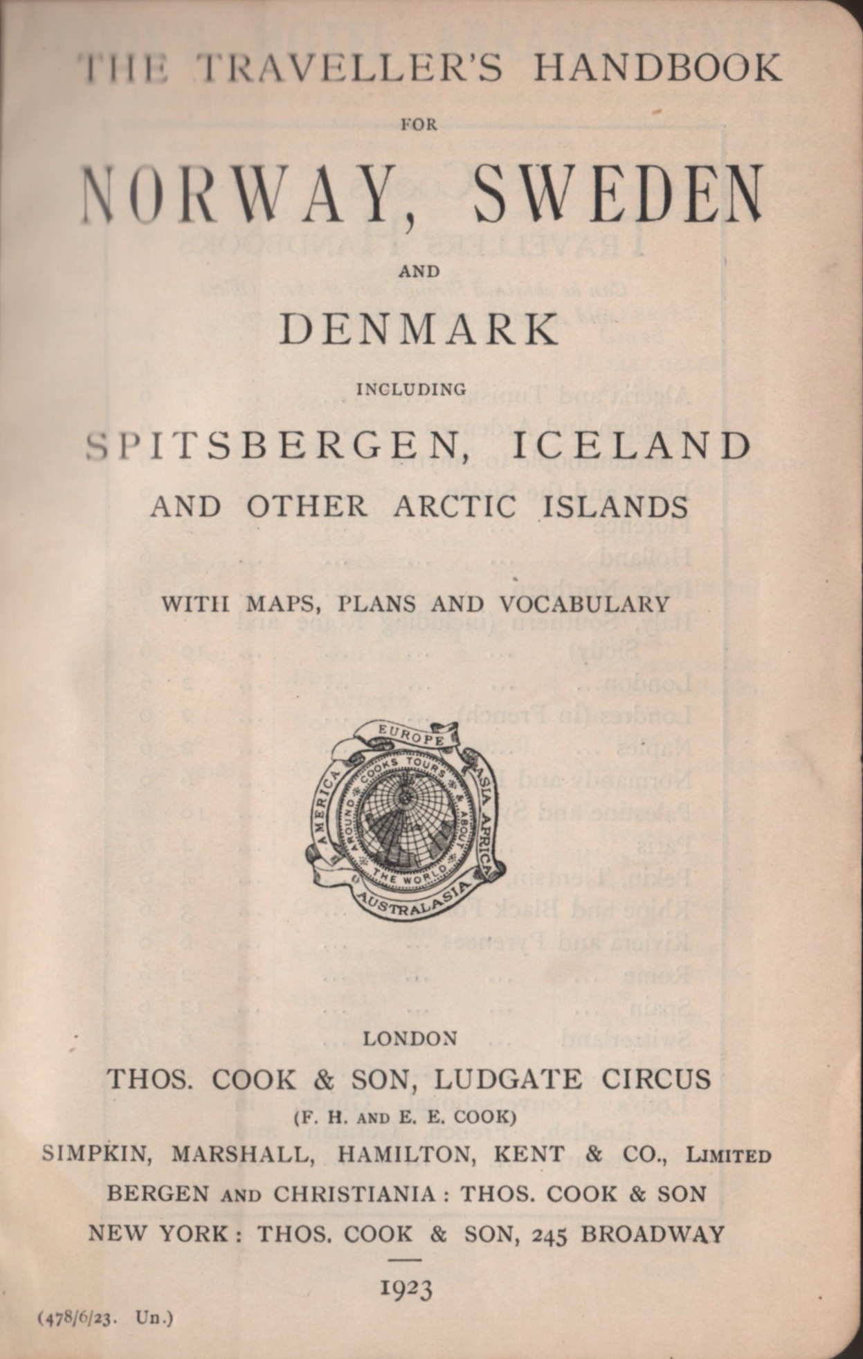 Cook’s Traveller’s Handbook Norway, Sweden & Denmark: Including Spitsbergen, Iceland and Other Arctic Islands, Thos. Cook & Son, 1923.