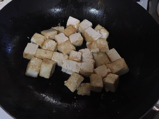 When you tire of this process, set the lightly browned tofu pieces aside.