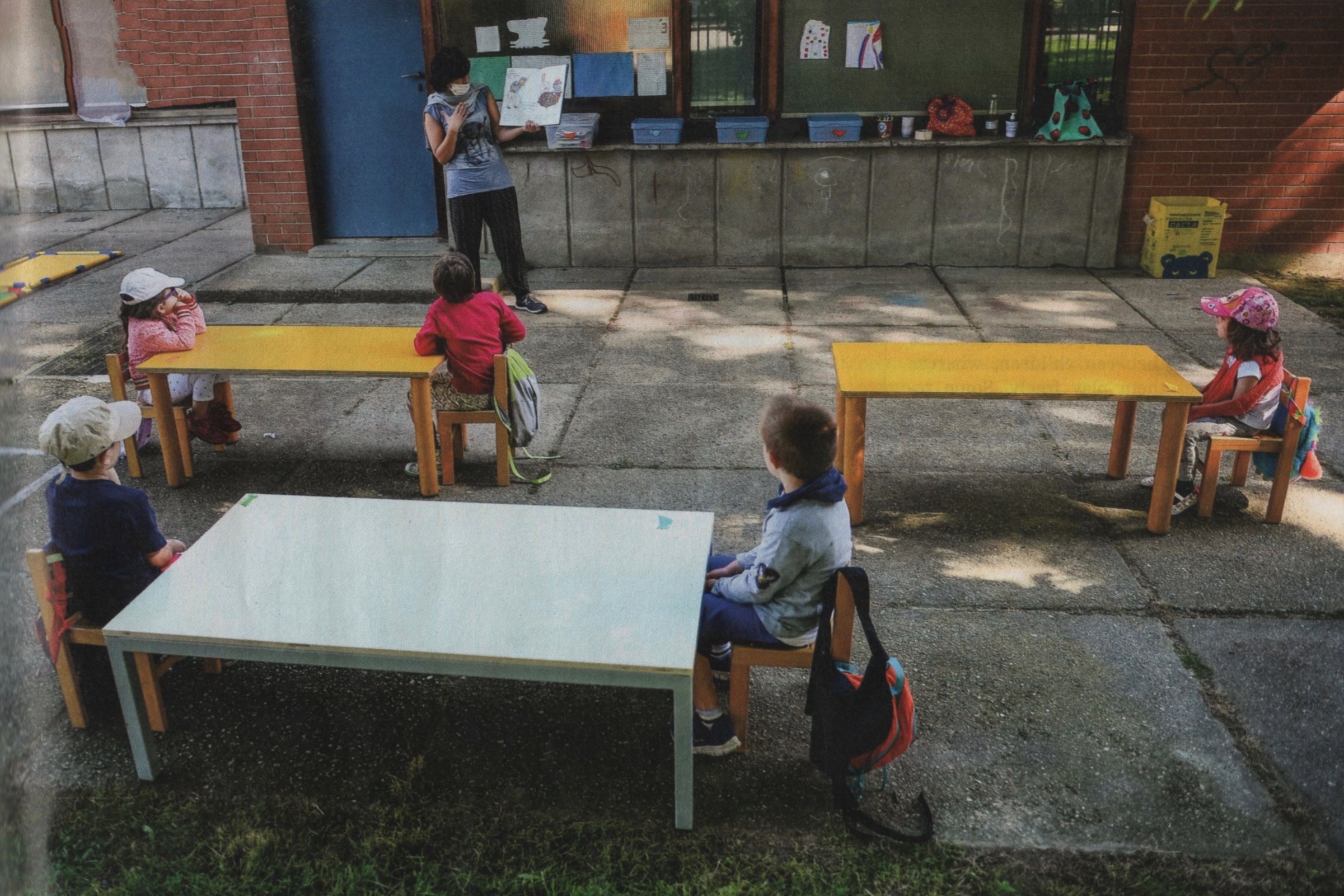 In Turin, a teacher reads to students in a makeshift outdoor, socially distanced classroom. This and other images from Science, July 17, 2020.