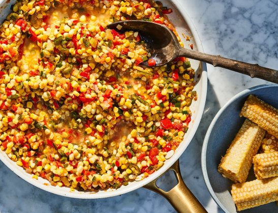 Corn kernels, especially fresh, will exude some liquid, but also corn starch (shocking!) which nicely tightens the liquid up and thickens it. For a little more zing look for Hatch brand canned green chilis from the Hatch Valley in New Mexico. They tend to perk things up a little more than the Ortega, in our experience.