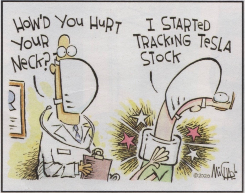 Consider the headline in Automotive News, July 27, 2020: “Stability at Tesla: 4-Quarter Profit Run.” And, note, unlike other automakers who profit from er… making automobiles, Tesla has yet to make a profit from doing so.