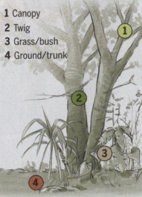 Convergent Evolution. Some anoles reside in the canopies of trees; others, on twigs lower to the ground. Yet others prefer grass/bush or tree trunks on the ground.