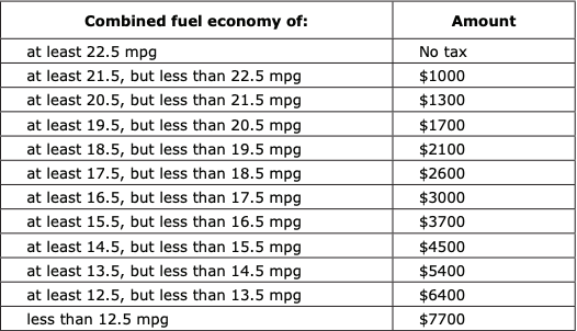 For example, a 2020 707-hp Dodge Charger Hellcat’s Gas Guzzler Tax is $2100, assessed by its “unadjusted” Combined City/Highway mpg of 18.5–19.5 mpg.