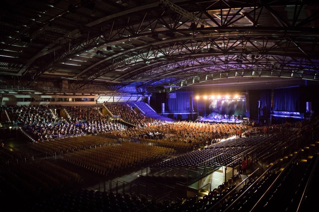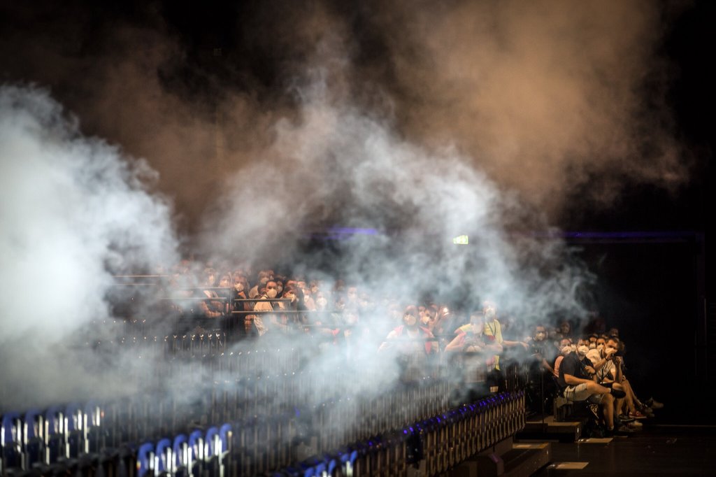 Scientists used smoke machines and carbon dioxide sensors to trace the movement of air throughout the arena. The three concerts were held under increasingly stringent controls: Three patterns of entering and leaving the hall were assessed. Social distancing increased to 1.5 meters (about 5 ft.), with the third concert halving the audience count.