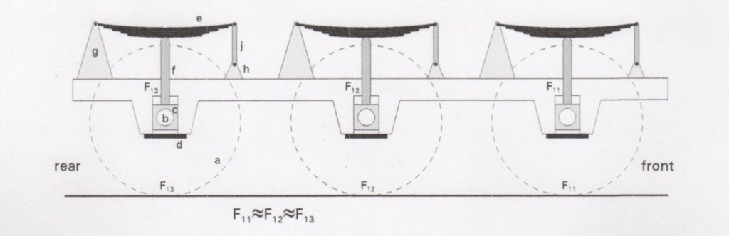 “Open half shafts,” Pomeroy explained, “took the drive to the rear wheels, which were suspended on torsion bar springs and located by slides in a manner familiar to those who have studied locomotive design.”