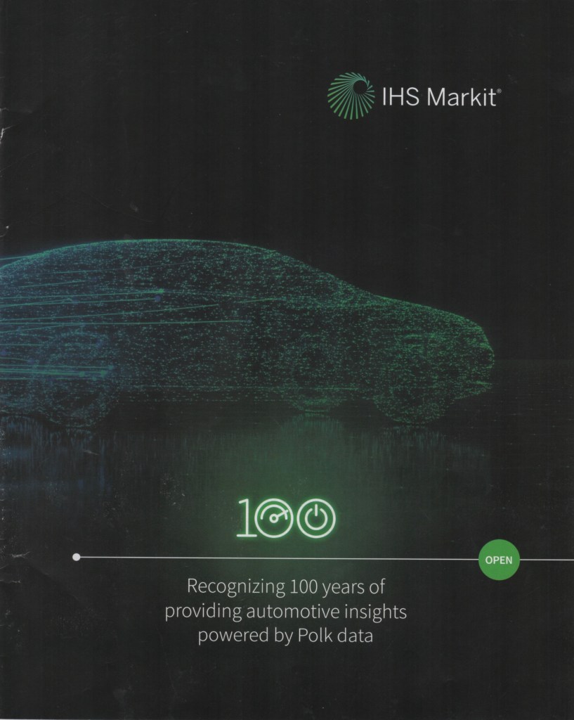 IHS MARKIT SPECIALIZES in information and analytics of many categories, including the automobile industry. A recent Automotive News includes a 14-page insert from IHS Markit that identifies key elements in the past 100 years of the automobile.