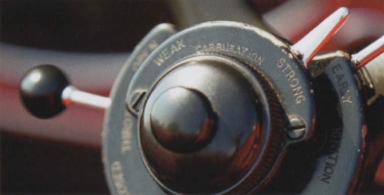 Notable too are the steering-wheel controls for adjusting ignition, fuel mixture, and throttle. The throttle is labeled conventionally: “Closed” and “Open. In Rolls-Royce tradition, the ignition lever is calibrated “Early” and “Late.” The mixture lever, “Weak” and “Strong.”