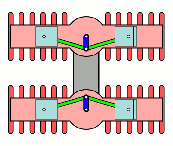 The Napier Sabre’s H Configuration. As described in Wikipedia, “An H engine is a piston engine comprising two separate flat engines (complete with separate crankshafts) stacked vertically and connected to a common output shaft.