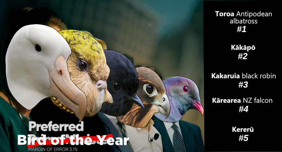 Organizers got suspicious when 1500 votes for the kiki pukupuku arrived from a single email address. Given the address wasn’t an aviary, they discounted possible individuality of the voters.