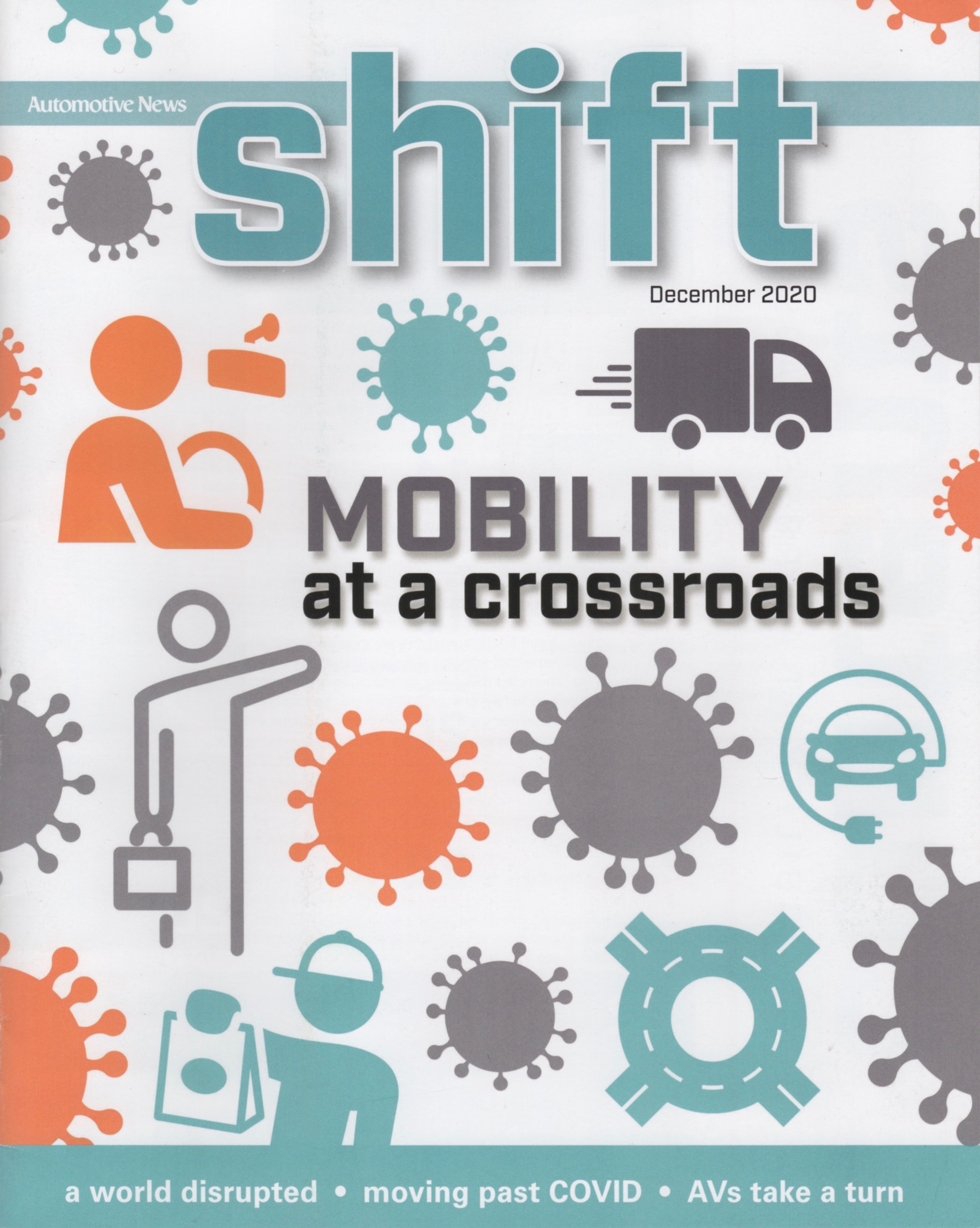 Automotive News occasionally includes a Shift supplement to its industry reporting. The December 2020 Shift focuses on “Mobility at a Crossroads,” one topic of which is Alexa St. John’s “The Great Reset: How Covid-19 has Upended Various Mobility Trends and is Reshaping the Future.”