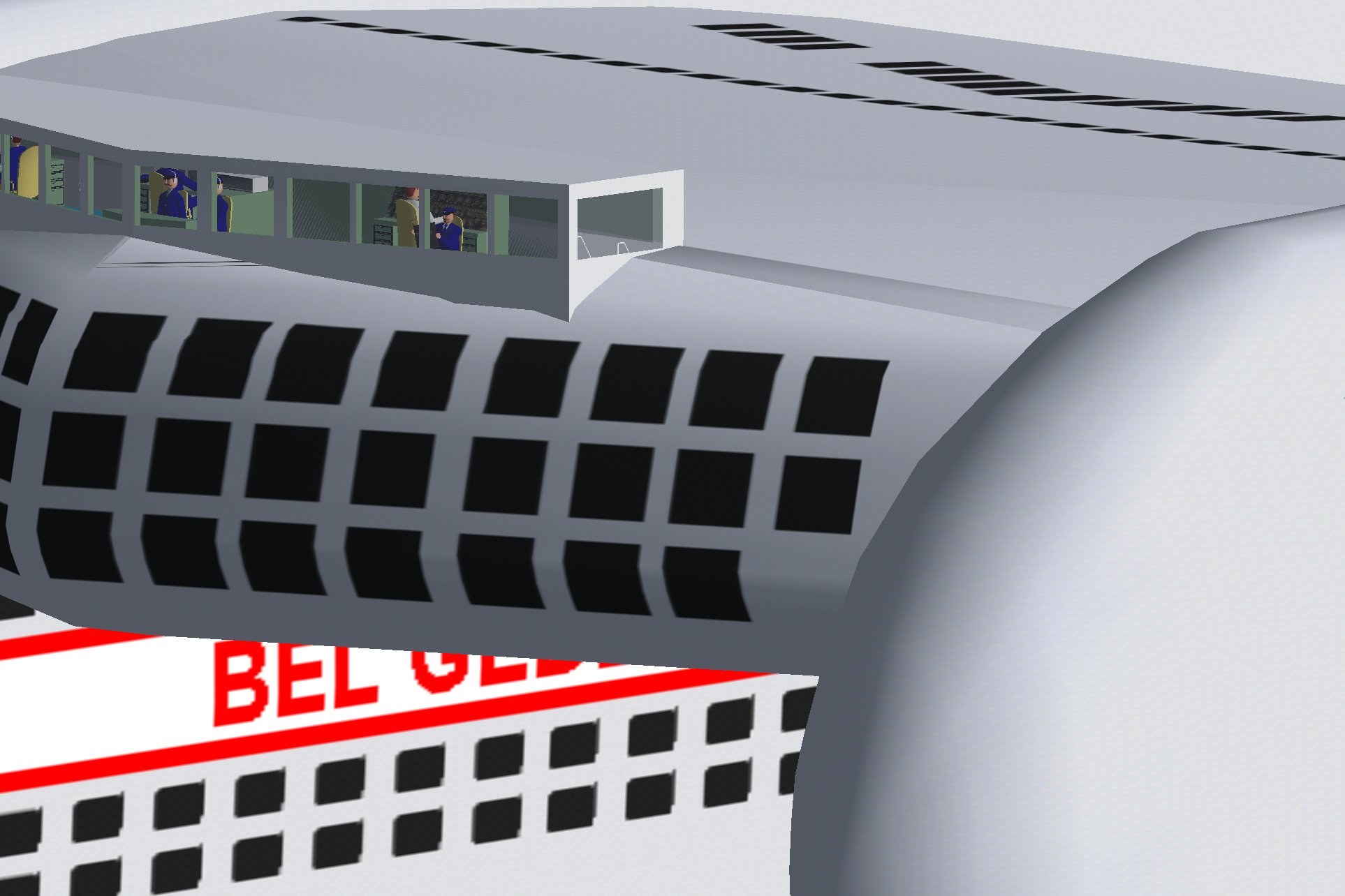 All this GMax fiddling is similar to that of the sculptor carving gargoyles way up on a cathedral, where they’ll be admired only from afar. Akin to that sculptor, though, I derive pleasure from knowing the Bel Geddes’ crew is hard at work (even if I chose not to render the women’s solarium and its masseuse).