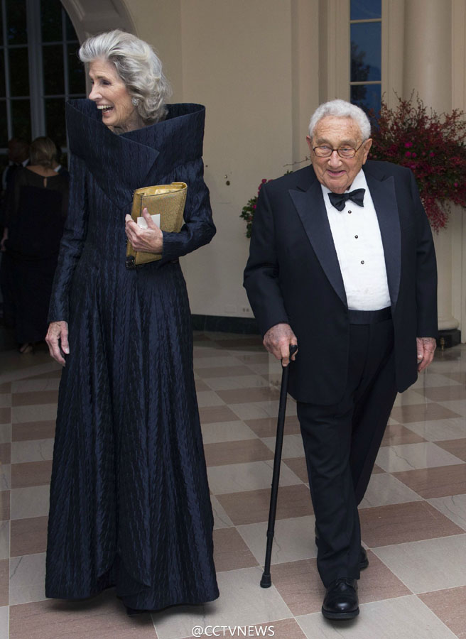 Henry Kissinger and his wife Nancy live in Connecticut and New York City. Image, 2015, from CCTVNEWS.