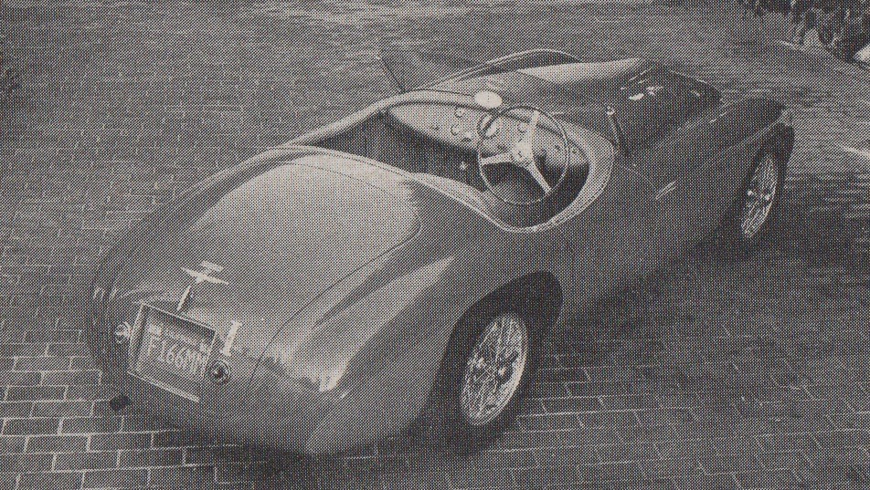 The Bond’s 1949 Ferrari 166MM Barchetta, i.e. “little boat,” roadster.