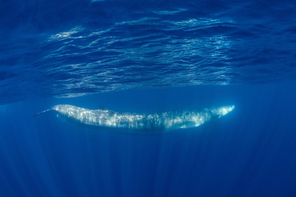 To put fin whale sonic energy in perspective, a jet plane taking off is measured at around 150 decibels at a distance of 80 ft.