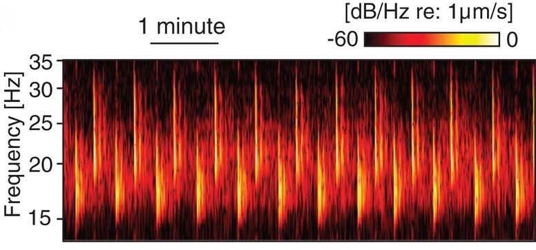Listening Instead to Fin Whale Songs. Kuna and Nábĕlek write, “Fin whale vocalizations are among the strongest animal calls in the ocean. Reaching up to 189 dB, the source levels are comparable to those of noise produced by large ships. The calls can be monitored hundreds of miles away from the source, enabling studies of whale behavior, abundance, distribution, and migration patterns.”