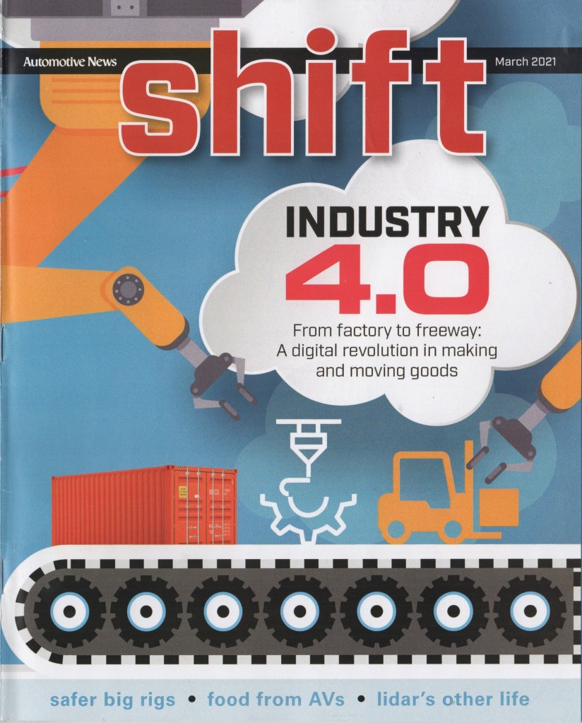 THE MARCH 2021 Shift, published as a supplement to Automotive News, has a most interesting editorial by Leslie J. Allen, Shift Editor. She writes, “I’m not much for buzzwords,” but notes that one keeps cropping up: Industry 4.0, in the sense of the fourth industrial revolution. Here are tidbits gleaned from her editorial, together with my usual Internet sleuthing.