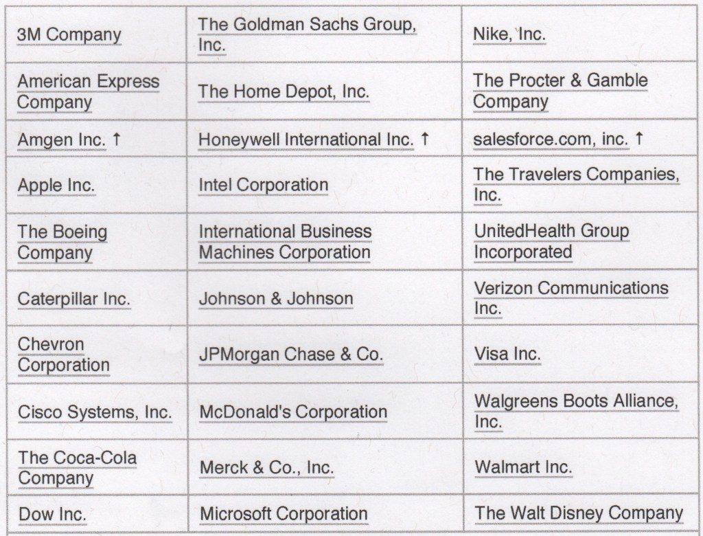 Here’s a Dow Jones Industrials list from 1965. (The change from 12 to 20 selected companies came in 1916; the jump to today’s 30 in 1928.)
