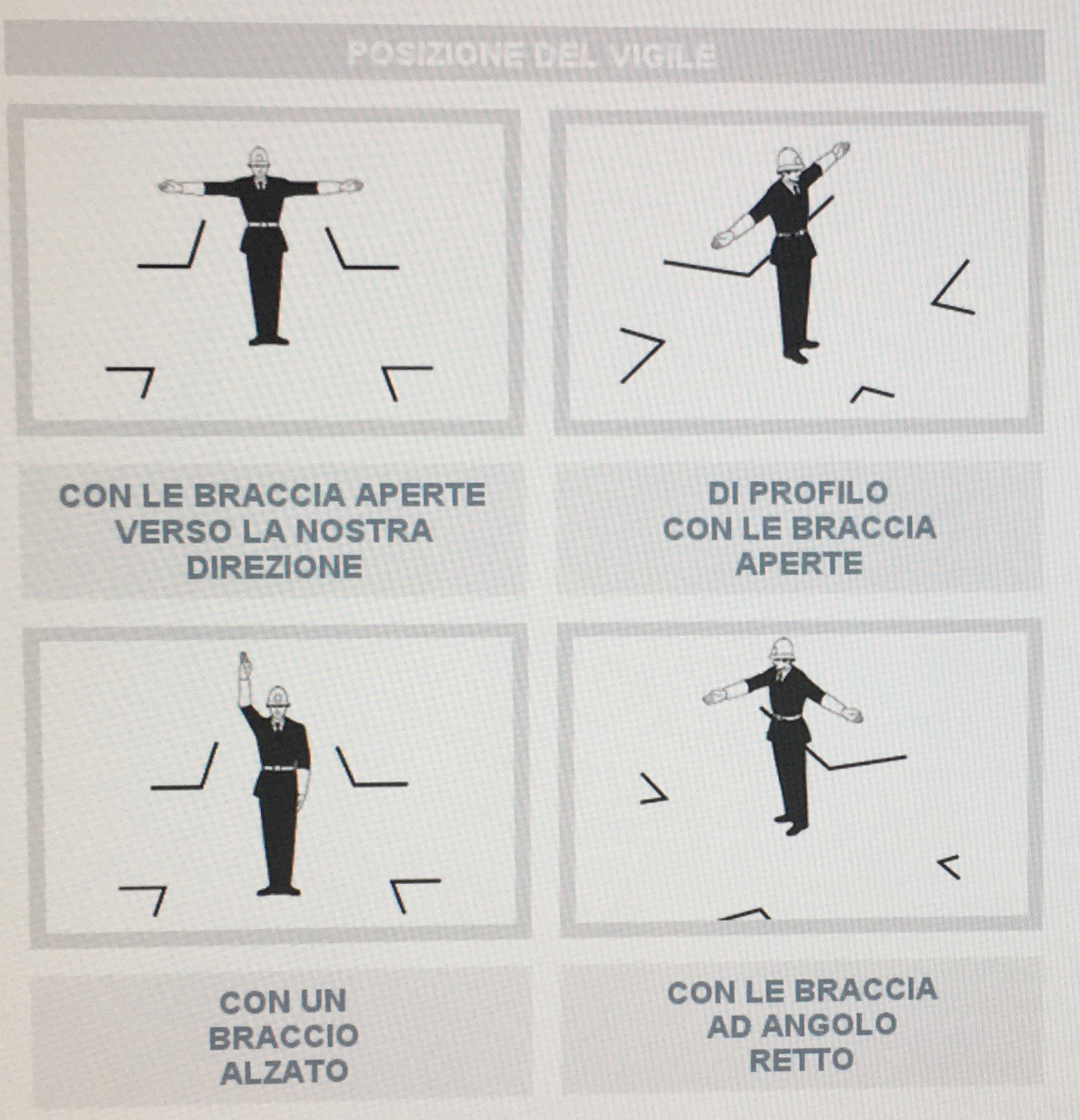 The link in her report leads to a portion of the Italian traffic code test, including information on white-gloved Posizioni del vigile.