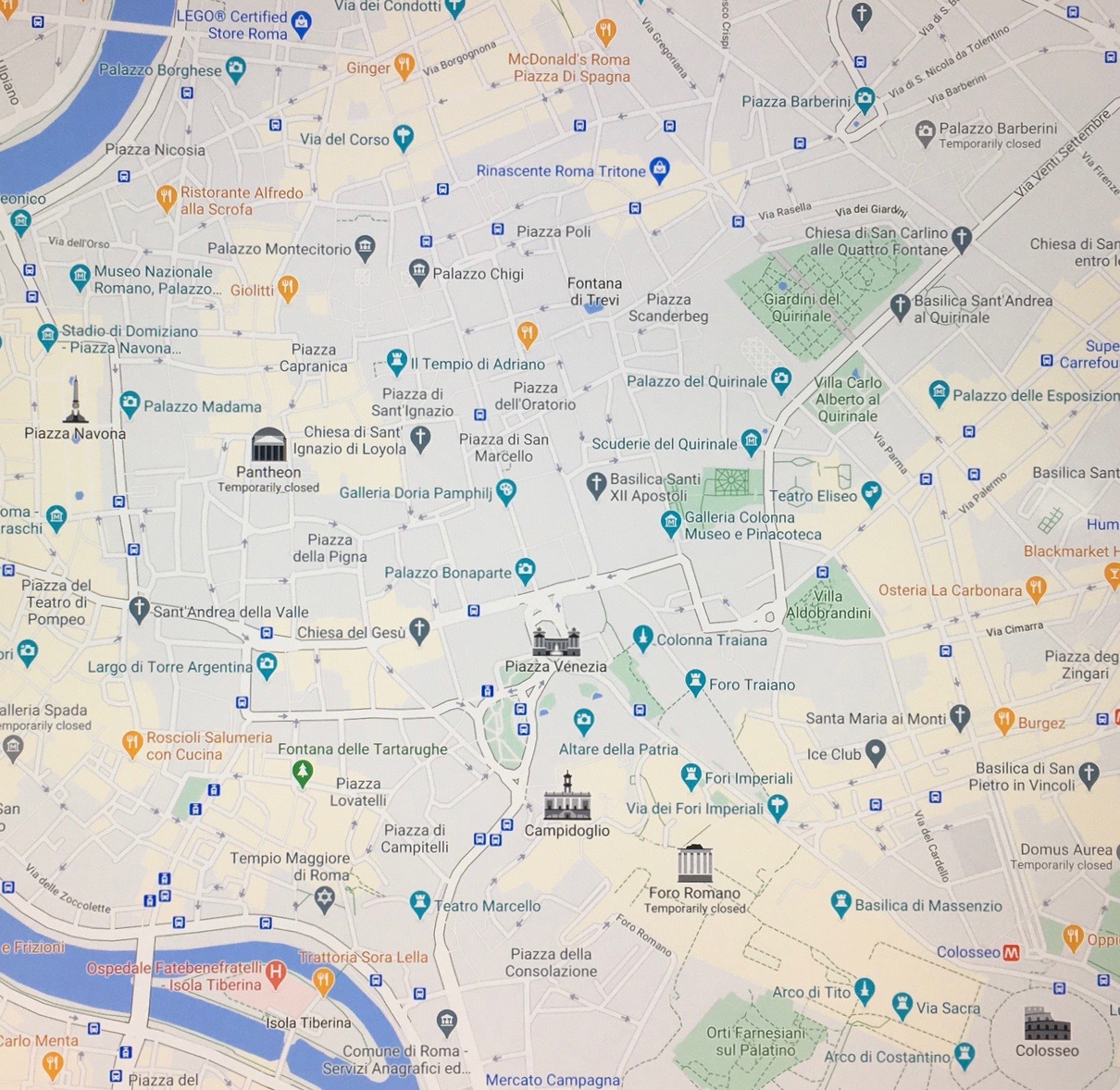 THE PIAZZA VENEZIA is as central a location as you might imagine in Rome: The Colosseum is 0.3 miles to its southeast. The Pantheon is 0.5 mile to its northwest. The Spanish Steps (and McDonald’s Roma) is 0.8 mile north.