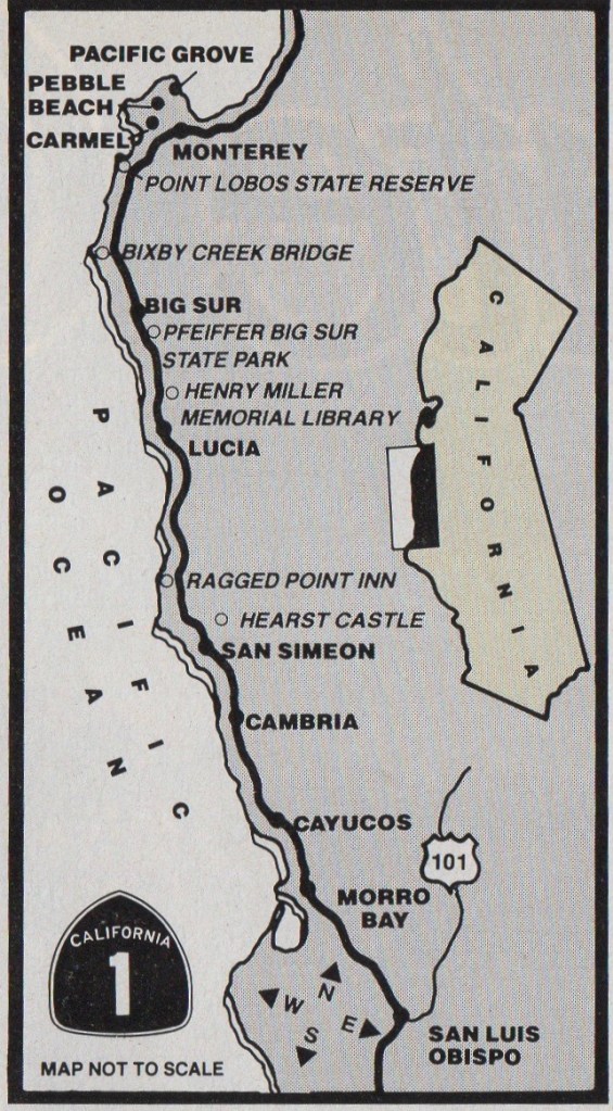 “Soon,” Dorothy said, “we see the first of 32 bridges… and remember the sign near Point Lobos that promised ‘Hills, Curves Next 74 Miles.’ ”