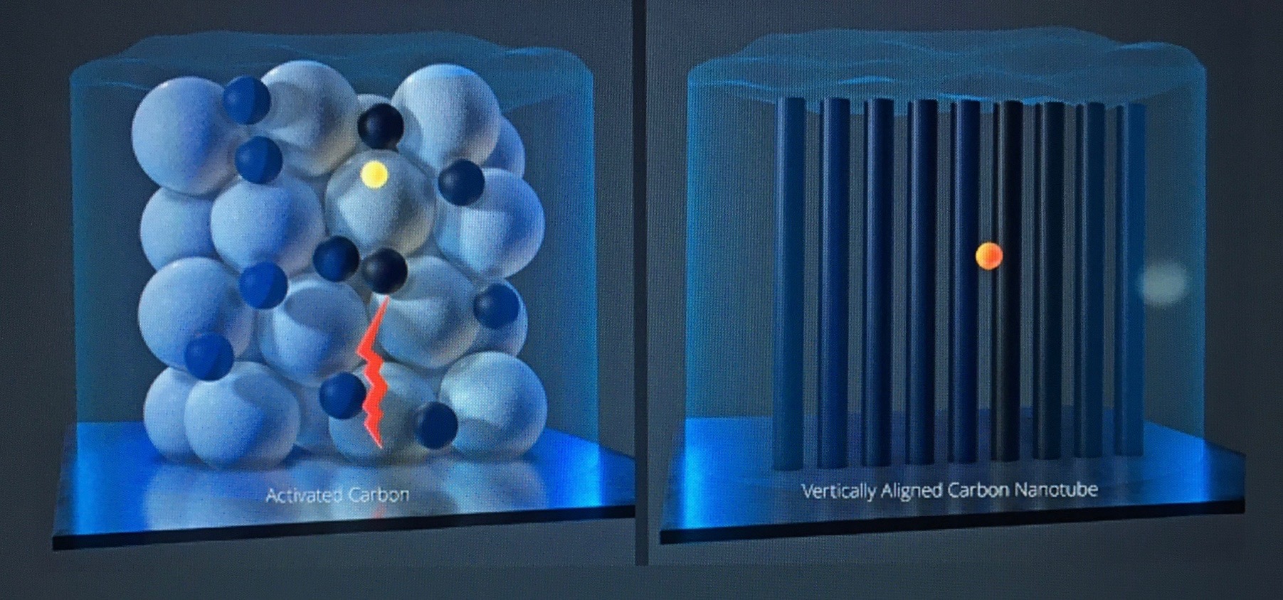 How Soon? Boulanger told Birch “There are various ways of introducing our concept of 3D-electrode to the market.” The easiest would be to grow a very thin layer of VACNT on a copper substrate, rather than carbon-coated copper substrates now used in the battery industry.