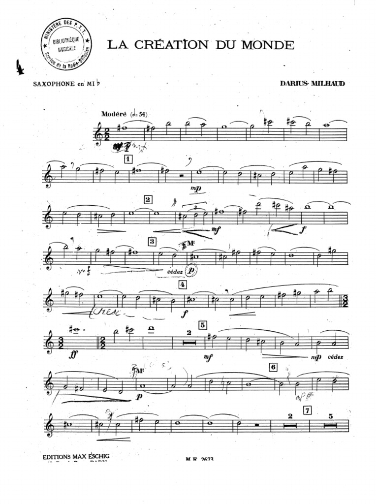 Music: Darius Milhaud’s La Création du Monde, written in 1923, uses jazzy tonality, rhythms, and instruments. It starts slowly, full of portent and befitting the empty set backdrop.