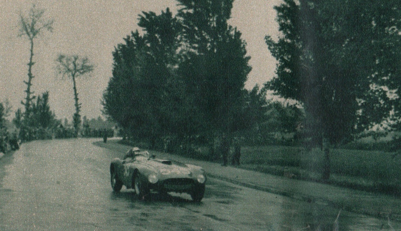 It rained for part of the 1954 Mille Miglia, which particularly hampered the big cars. Nonetheless, Millanta noted, “Bad weather conditions on difficult roads are tests that a modern sports car must face with equanimity.”