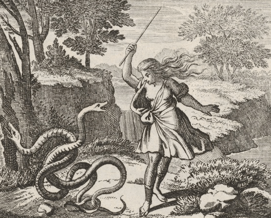The Bible. Around 1400 BC, Moses used a bronze serpent on a pole to cure people who were bitten by snakes (Numbers 21:5–9). Also, NIH notes, a snake’s shedding its skin indicates longevity and immortality; a snake’s ability to change from a lethargic stage to one of rapid activity was thought to symbolize the power to convalesce from an illness.