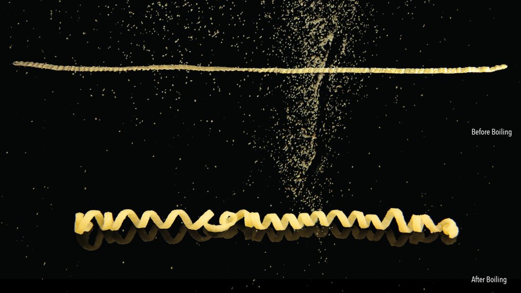 The trick this time around is to fashion the dried pasta so that it reacts in a desired way in response to boiling water.