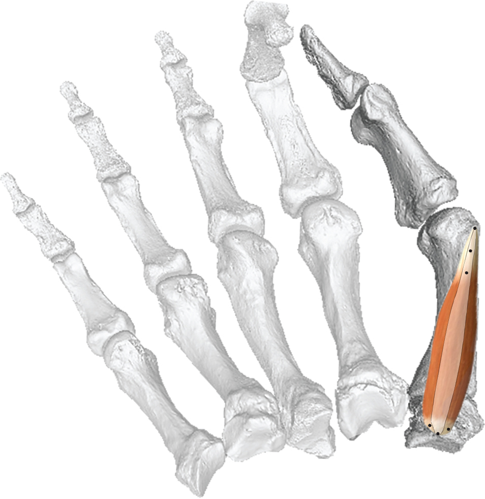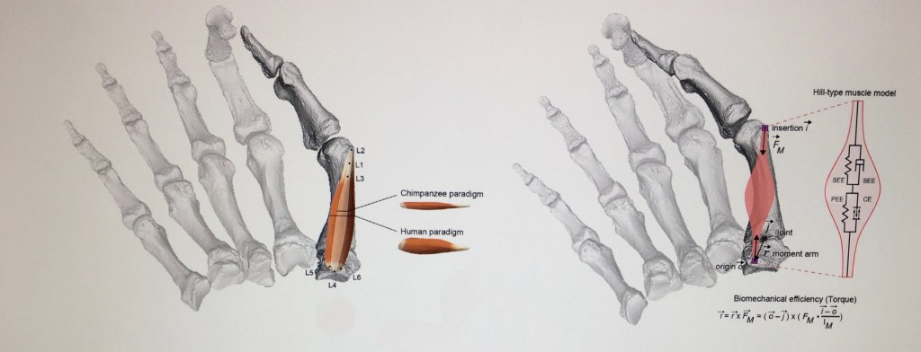 The researchers focused on a particular muscle, m. opponens pollicis (Latin: opposed thumb), one of short thenar muscles of the trapezium.