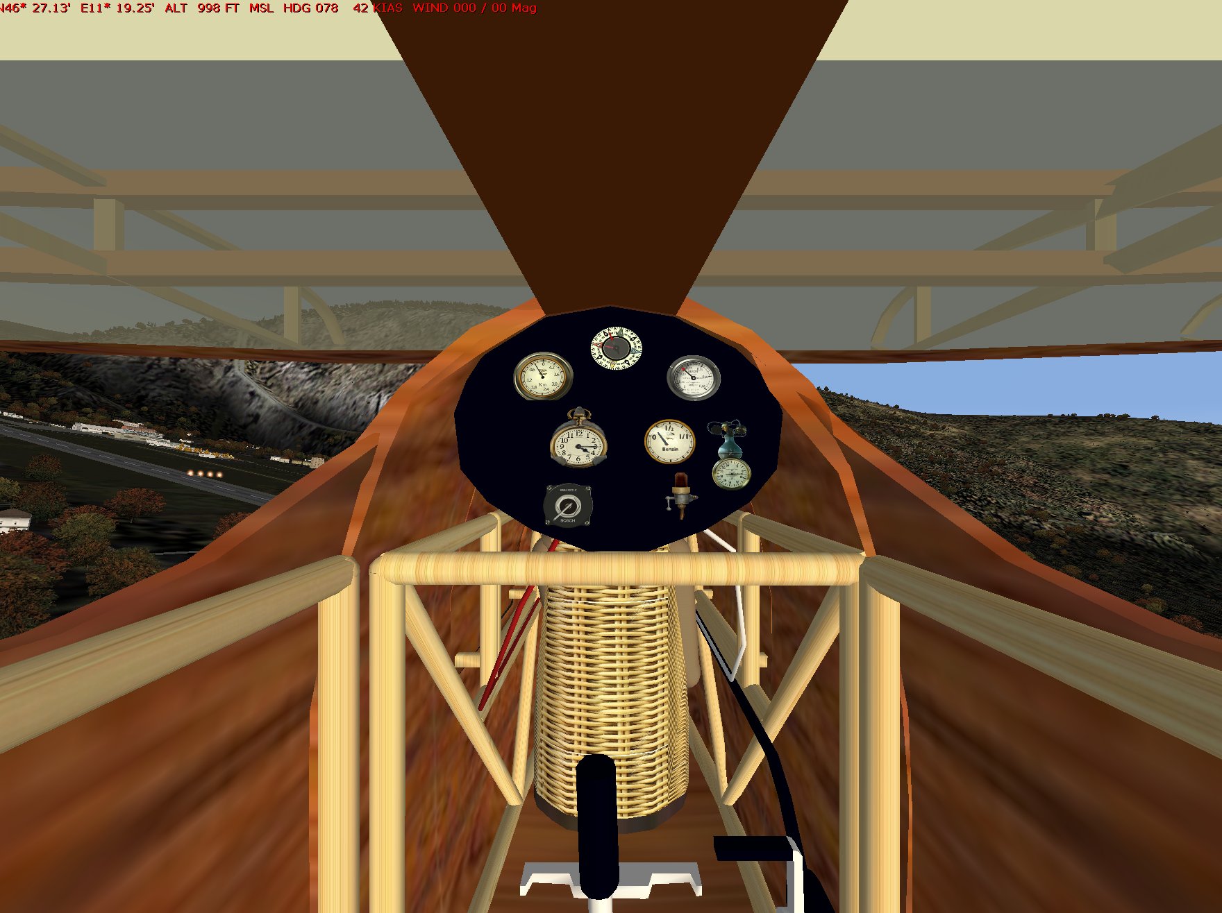 South of Bamberg, 68 kts (78 mph). And bored. Hurrah for Simulation Rate.