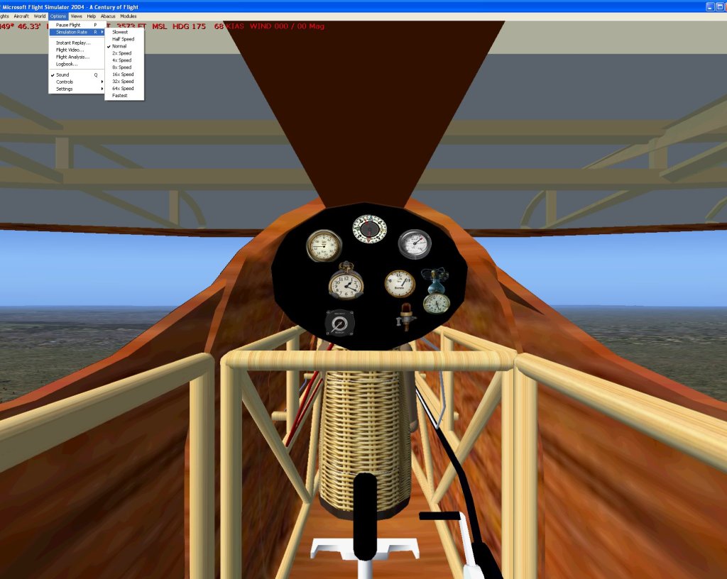 Simulation Rate. Wisely, Microsoft incorporated a Simulation Rate option, from slowest and 1/2 normal to 64x and fastest.