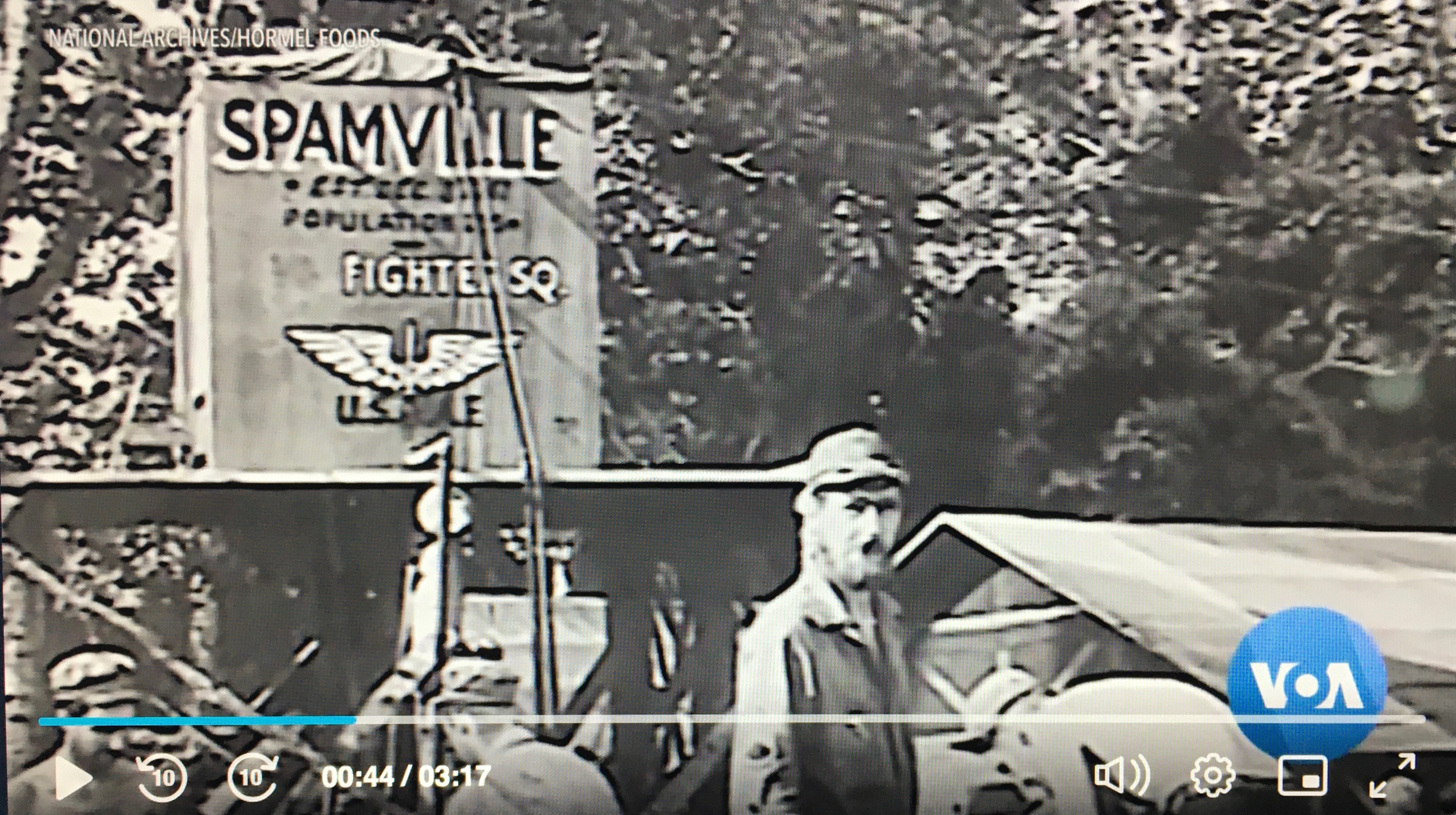 I’M NOT ENCOURAGING use of the Internet sewer. Rather, I’m thinking of real Spam, the canned luncheon meat sold around the world and celebrated in a recent Voice of America video, “Spam No Longer Just Luncheon Meat for Sandwiches,” by Elizabeth Lee, VOA, May 31, 2021.