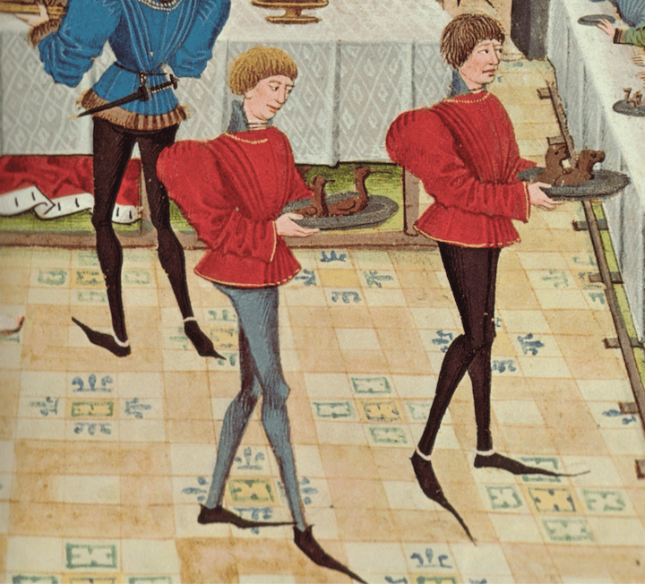 We can suspect that Chaucer’s mod monk was wearing pointy shoes.