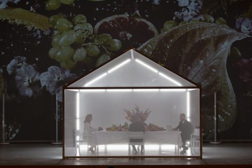 My Own Review. I beg to differ with Opera Gazet’s assessment and especially its dislike of director Calixto Bieito’s avant garde production. The set includes a see-through house. Much of the action takes place around its dinner table heavy with consumables that end up on the floor.