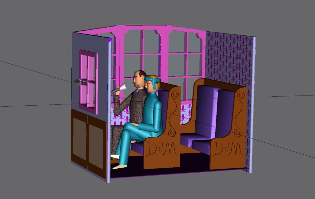 Everything went fine until the model was well along. Then, when adding Henri Deutsch de la Meurthe and his daughter Suzanne, I got a dreaded GMax “mdl not found” error and a failure to compile.
