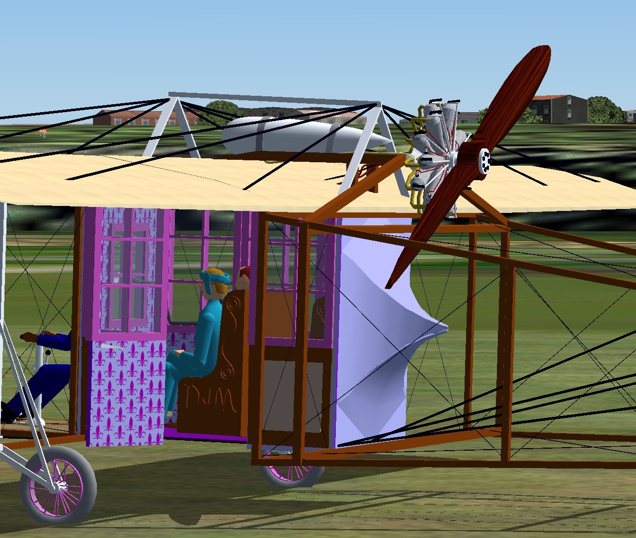 PIONEER AIRCRAFT MODELS are fun to build on the computer. Not just sleek shiny tubes, they have everything hanging out to admire. My rendering of Henri Deutsch de la Meurthe’s 1911 Blériot Type XXIV is an example of this, indeed, to a fault in more ways than one. Today in Part 3 of this saga, it’s occasionally back to the drawing board, er, computer screen, because of conflicting data, inexplicable GMax limitations, and the propriety of fleur-de-lis designs.