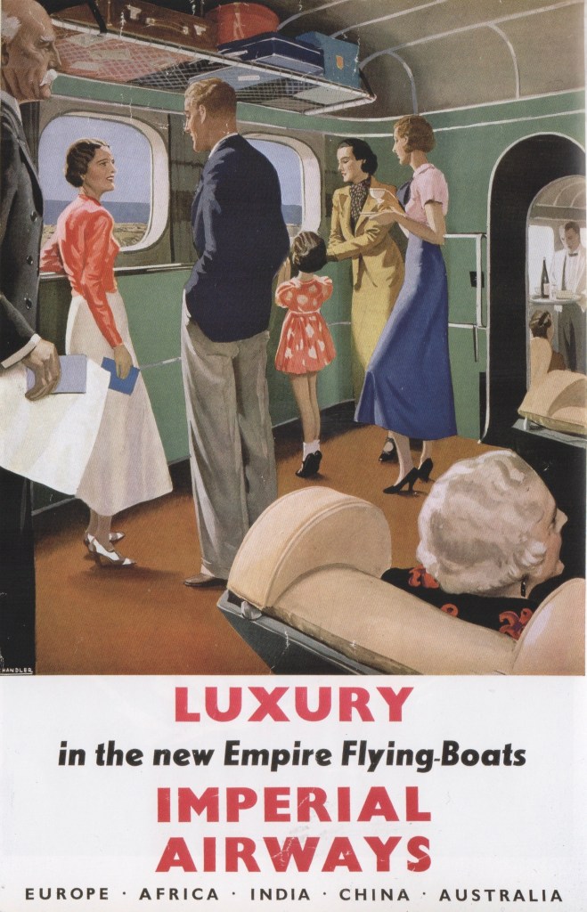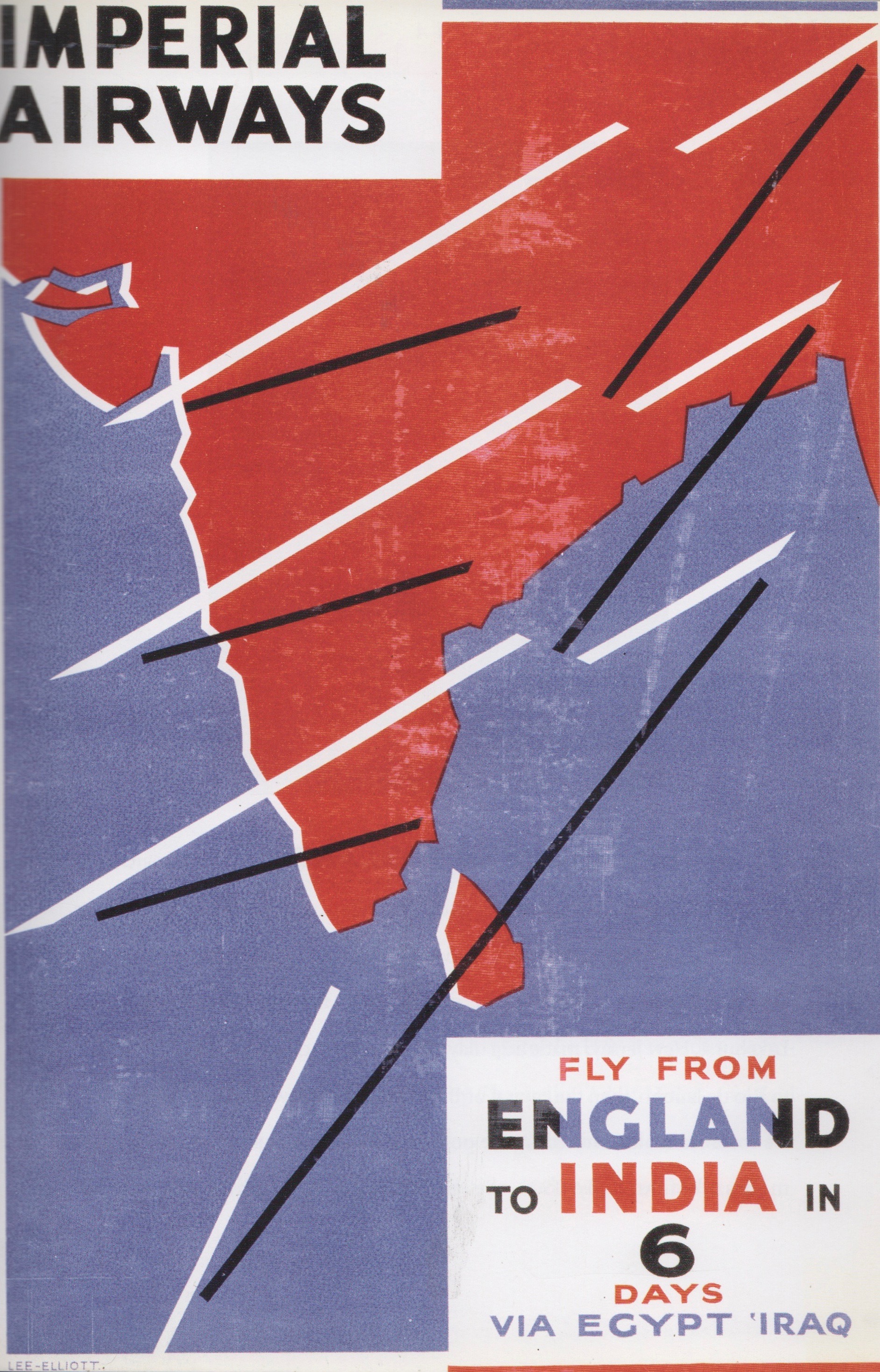 London continues, “The poster for Imperial Airways [above] takes that approach to the limit…. The message is clear: Grab your passport and luxury is yours—whether you are on the way to Africa, India, China, or Australia.”