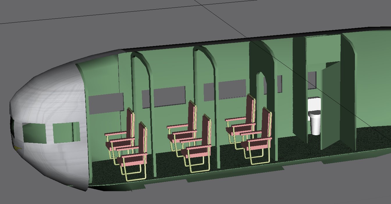 Populating the Cabins. What with the aeroplane’s seating six passengers in each of its twin pods, I had a wizard idea of populating the cabins with individuals from some of my earlier GMax projects.