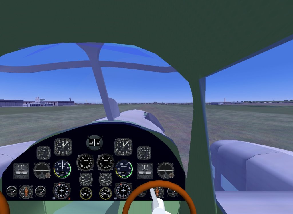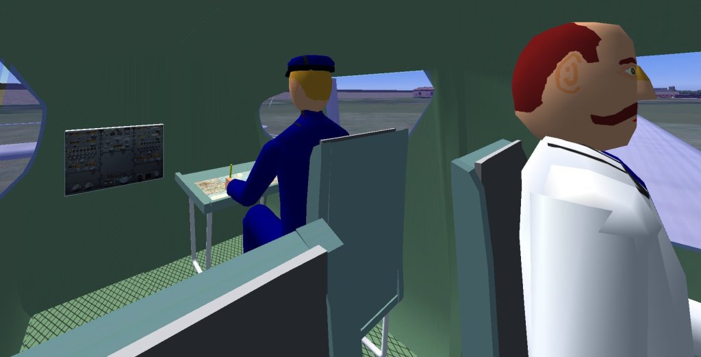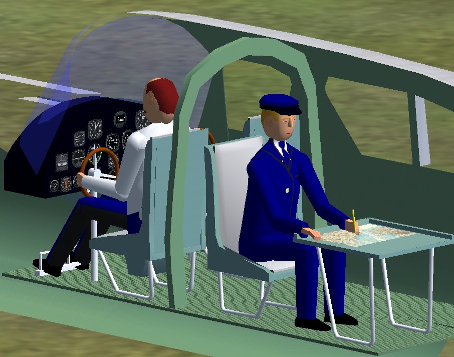 The pencil in the navigator’s hand follows the La Manche route followed by Louis back in 1908. This animation uses GMax “Tick18” coding, intended for repeating objects such as beacons, but useful here too. By the way, my pilot is modeled after Louis Blériot, though, in fact, by the early 1930s he no longer piloted aircraft.